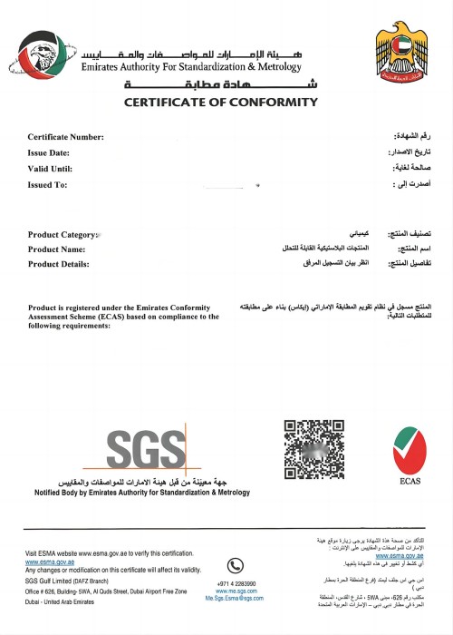 3.提交测试报告、进口商营业执照、说明书等资料到阿联酋ECAS指定的认证机构进行审核